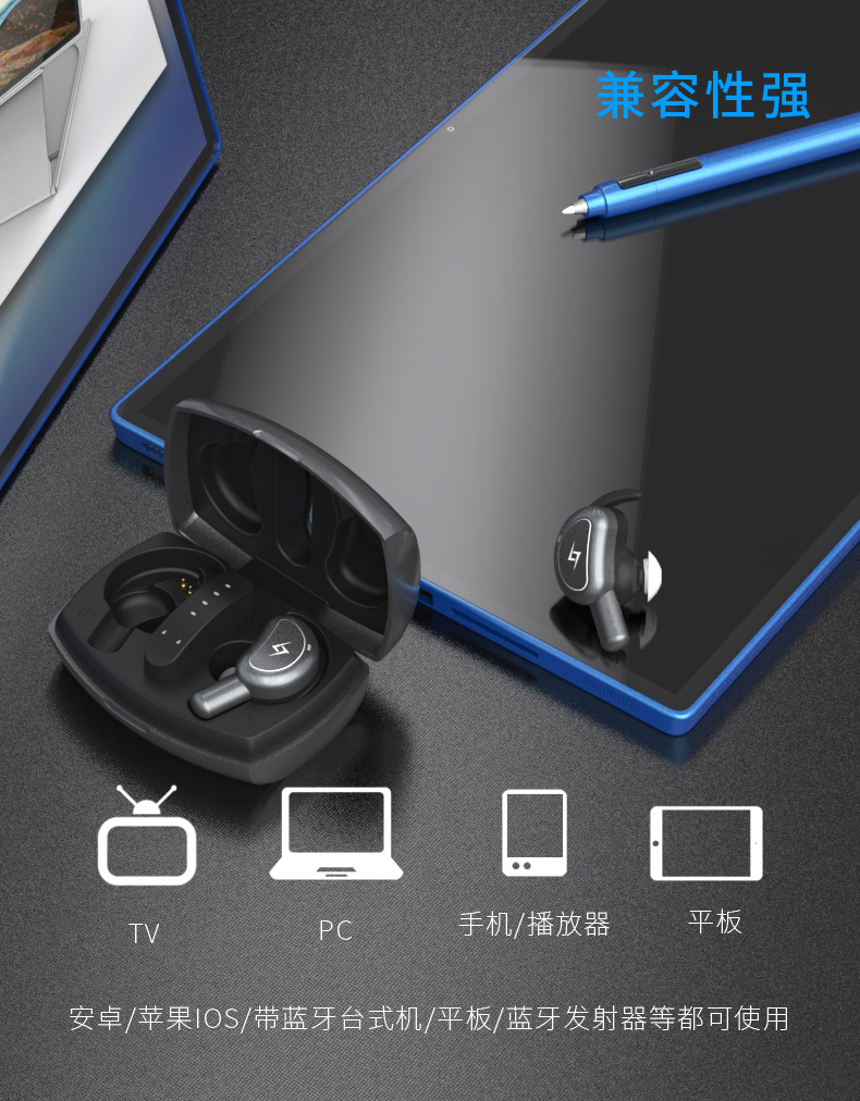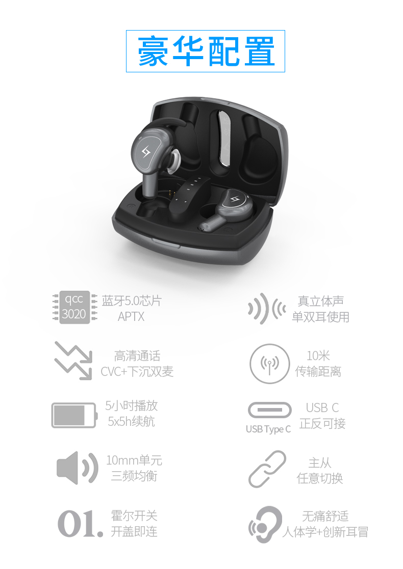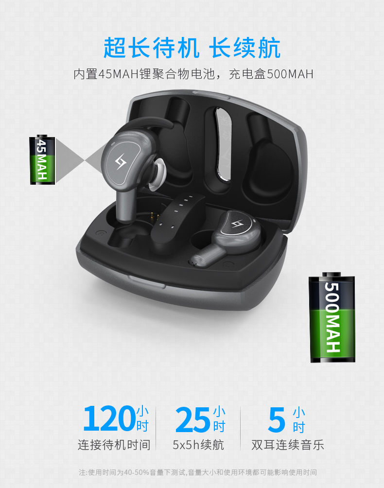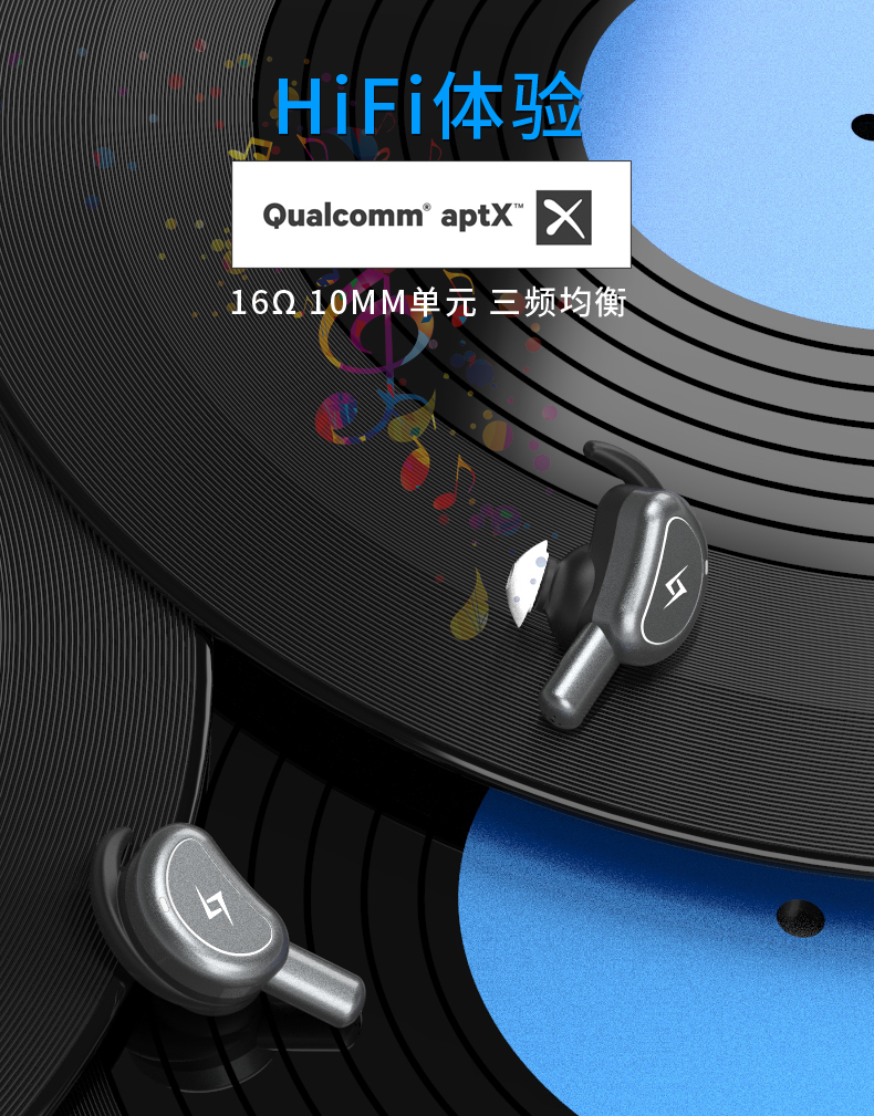 2、音質層次分明:16歐姆10mm復合單元(低音震撼,中音甜,高音準),連續播放音樂5小時,連接待機120小時;