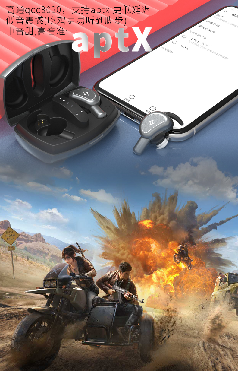 1、高通QCC3020芯片,支持APTX,相對更音質好延遲低(更合適游戲吃雞等);