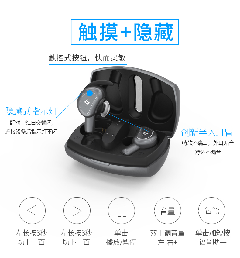 6、人體工程學設計,帶跑步運動掛耳,穩定防掉,隱藏指示燈;