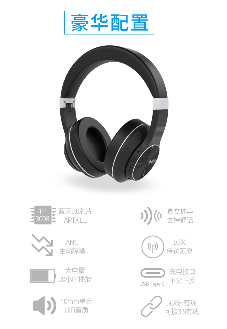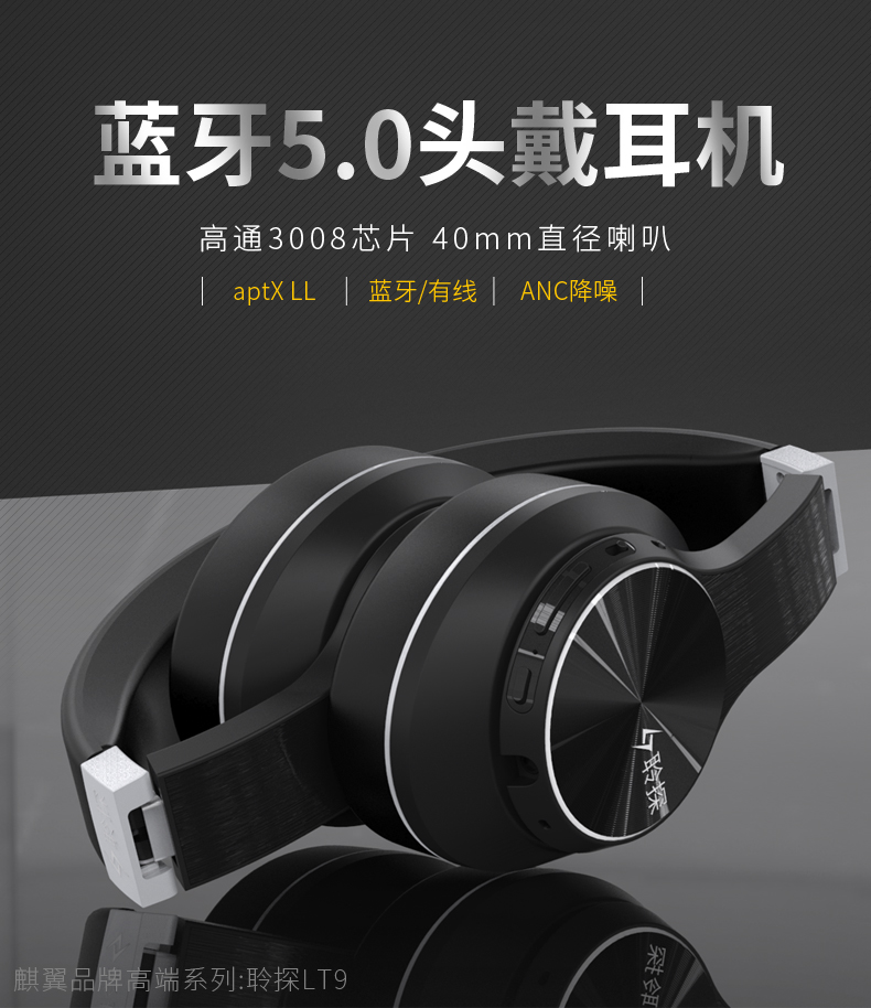 聆探LT9 頭戴式藍牙耳機 高通QCC3008芯片APTX LL藍牙耳機支持AAC 主動降噪